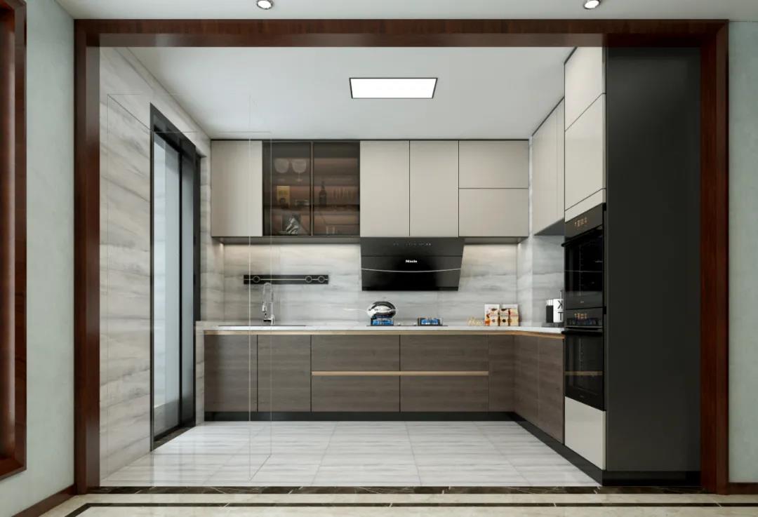 厨房操作台做L型设计,动线流畅,宽敞便捷。生活阳台与之连通,相对扩宽厨房的适用范围。家电配备齐全,烘焙、烤制都不在话下。