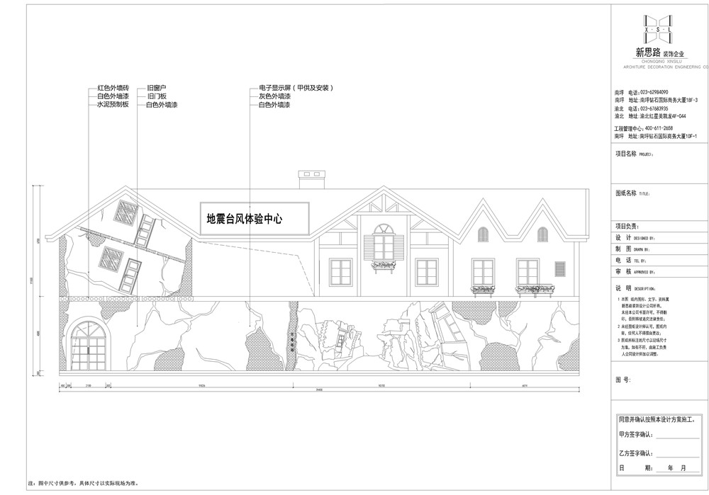 设计施工项目:仙女山旅游景区(地震体验中心) 设计立面图 设计效果图