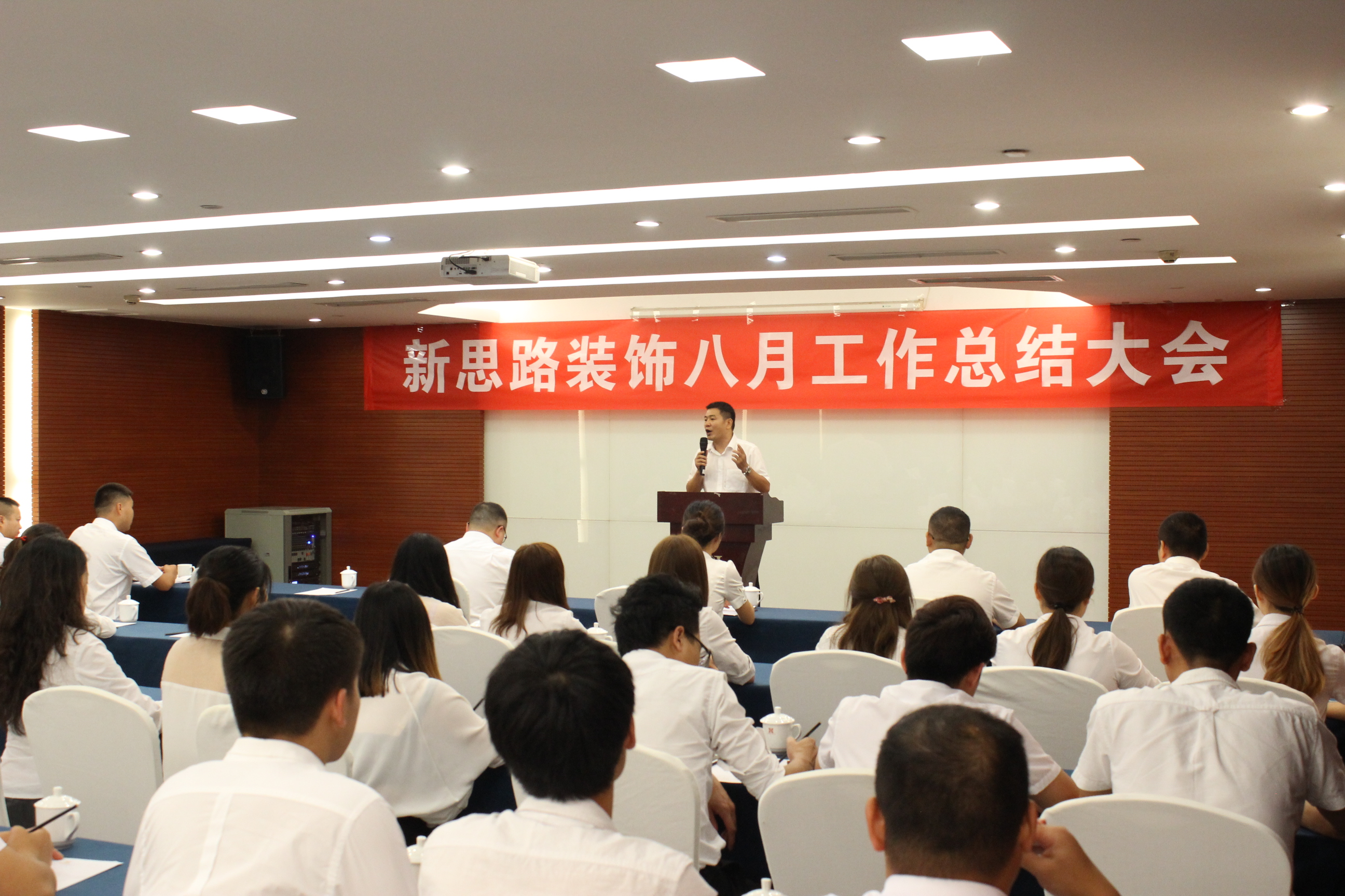 2017年9月1日,雨洗山城,金秋气爽,ANBO.COM在学豪酒店隆重举行了8月工作总结大会。来自公司总经办、运营部、南坪店、北红星店、巴南店、工程部等店面部门的100多名员工聚集一堂,共同回顾8月的硕果累累,展望9月的无限生机。