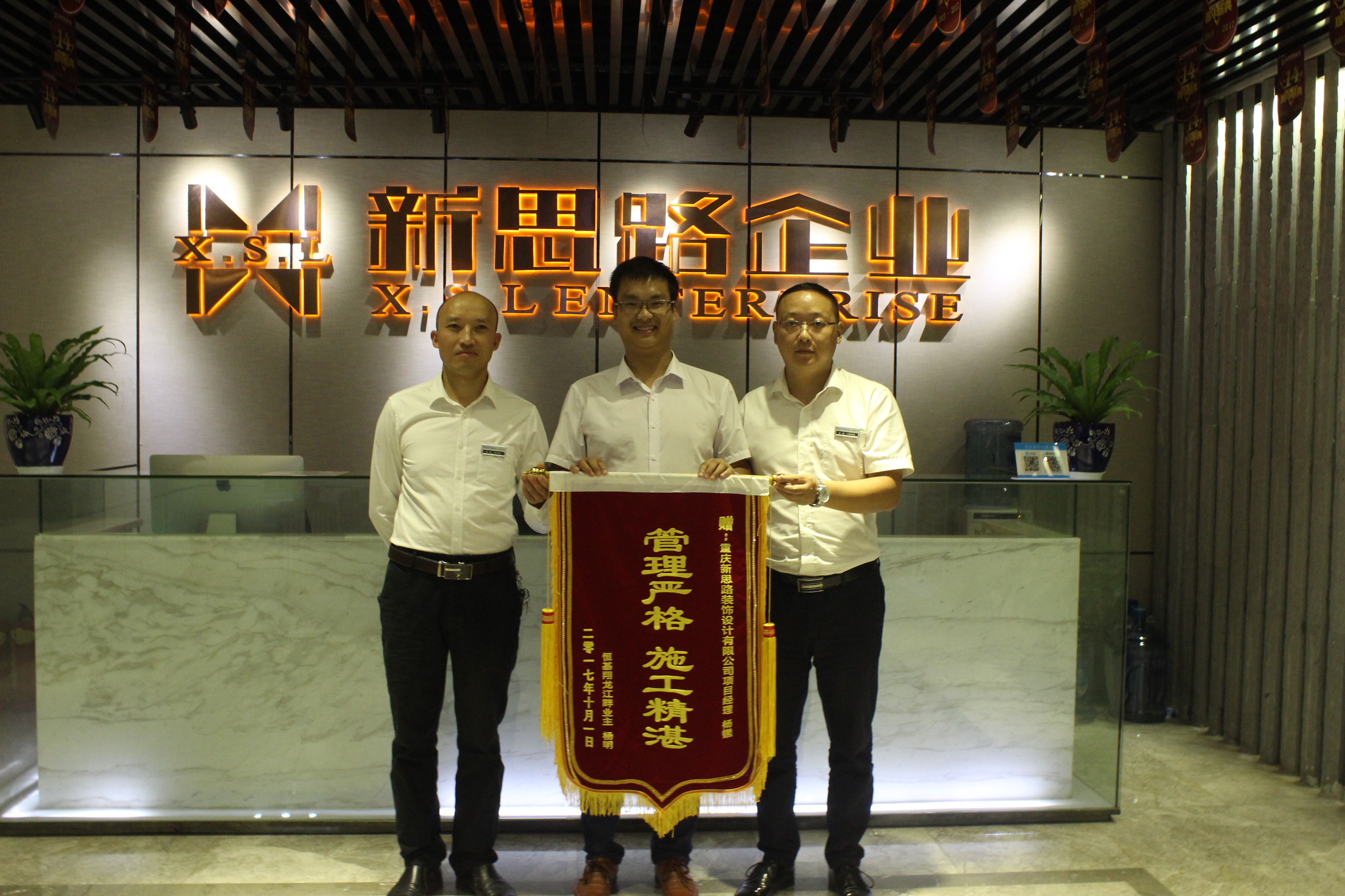 杨老师说:“高品质装修还是要选择新思路!项目经理杨鑑的品质把控让人叹服,每一处细节都毫不放松,追求工艺的精益求精,为我的新家带来了高超的施工品质,同时他非常负责,我的问题他都会详细给我做出解答,让我在装修期间没有任何担心,所有东西他都帮我做的很好,公司施工规范,管理严格,让我感受到了新思路的品质追求。所以今天送来了感谢锦旗。”