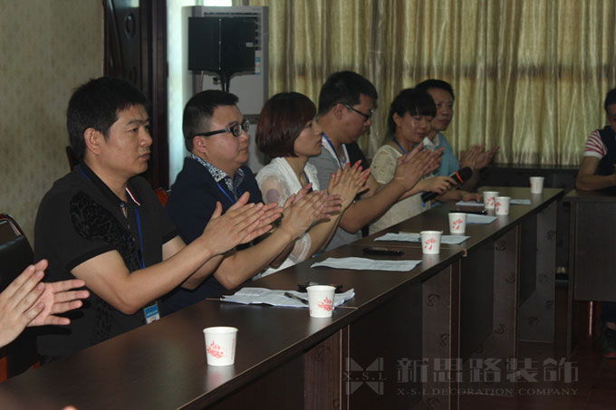 李总在会上发表了热情洋溢的感谢辞。他首先感谢家人及新思路的团队们,他饱含深情地说:“有你们今天的凝聚力和团队意识,让我感觉到有一股很强的力量将要引爆整个装饰行业,有了你们这股力量,我对新思路的明天更加充满信心,感谢大家,你们辛苦了!”在致辞中,李总寄语每个员工敢于思变,从现在开始改变自己,敢想敢做,将想法付诸实践,对客户的承诺要说到做到;第二,每个部门都要力争做到最好,不管是设计、工程、还是服务,都要用高标准来要求自己。第三是树正气,走正道。只有具备正能量,企业才能发展。同时企业的发展也离不开团队的力量,希望大家发挥“不抛弃、不放弃”的团队精神,努力打造团队核心竞争力。李总的讲话高屋建瓴、鼓舞人心,博得了在场所有人的阵阵热烈掌声。