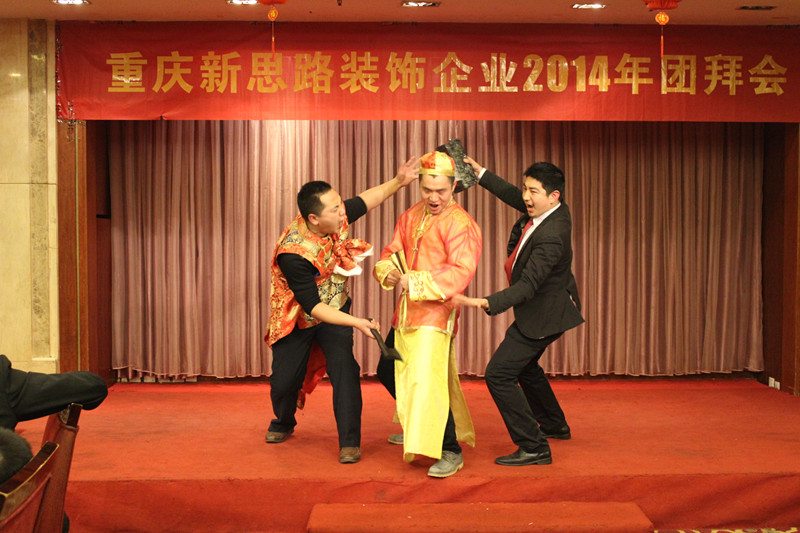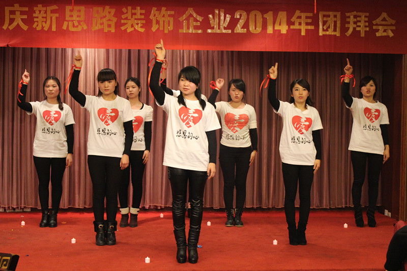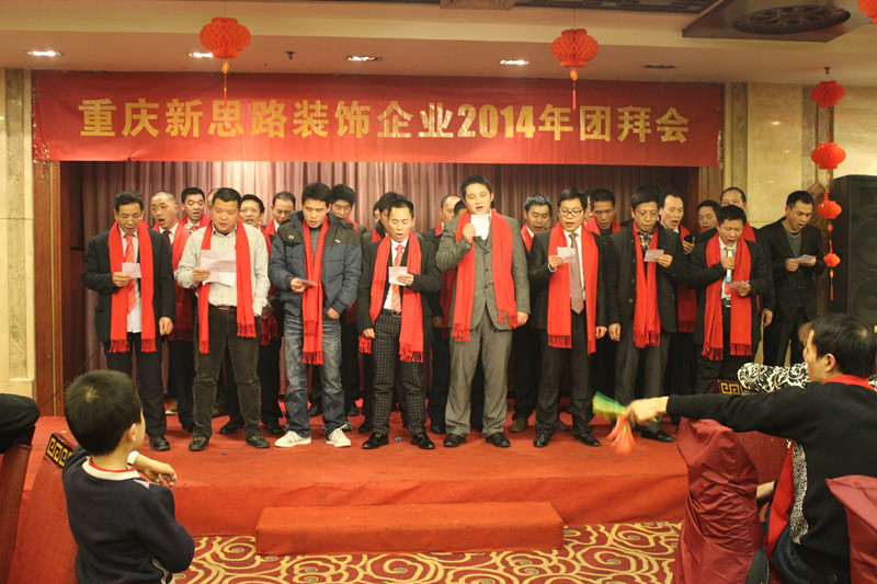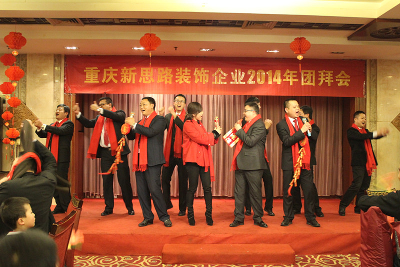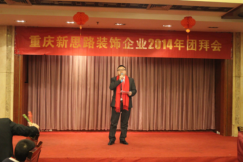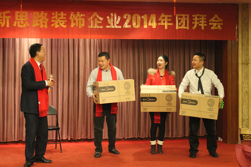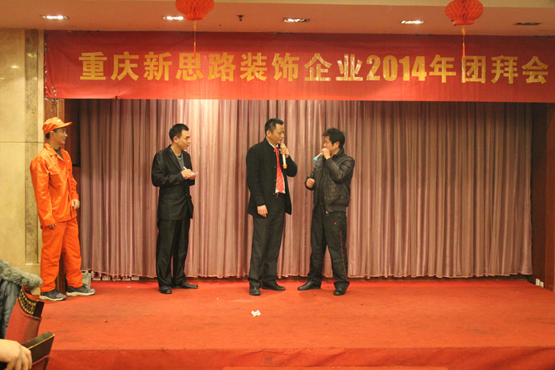 晚会首先由主持人致欢迎词,随后由李总致新年贺词。李总表示,过去的2013年,是新思路取得辉煌成绩的一年,公司科学发展,创新机制体制,构建出有特色、有较强竞争力的企业发展模式,全力做品质装修践行者,公司实力不断增长,工程质量逐步走在行业前端。这些成绩的取得,归功于“装修只做客户口碑”企业文化的先进性,归功于全体新思路员工的团结奋斗,归功于所有合作伙伴的支持和配合,归功于社会各界的关心和帮助。最后,李总对全体新思路人和所有关心、支持新思路发展的合作伙伴和社会各界人士致以崇高敬意和衷心感谢。