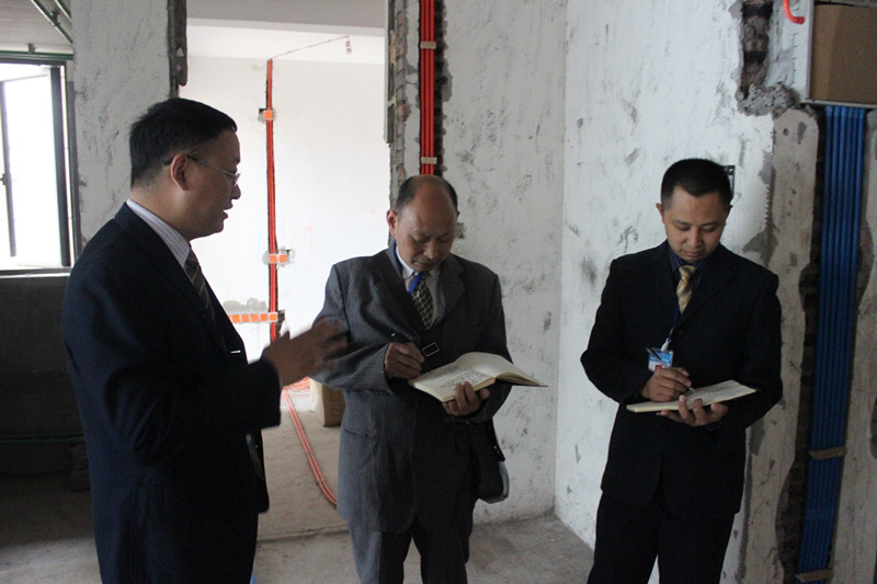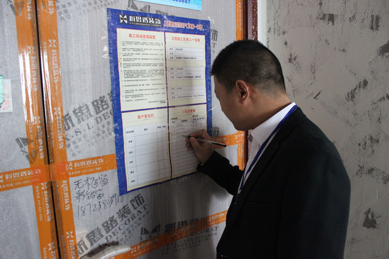此次巡查主要针对工地形象,如标示牌、成品保护、器械配备、清洁卫生等多方面进行考核和检查。同时对隐蔽工程如水电改造、土建、基层处理等工种进行认真检查。在各个施工现场,工人们正有条不紊的进行施工,各样材料的摆放及成品保护也都细致到位,工地综合质量基本达标,处处显露出新思路“精钻工程”的细致与独到之处。在检查的同时,巡查小组还依照公司工地管理相关规章制度,对所有工地进行了总结评分,并由客服人员记录在案。巡查过程中,文经理一直把“工程质量”挂着嘴边。他多次强调,工程质量是新思路的根本,是公司生存和发展的命脉,每个质检和项目经理必须要以身作则、恪尽职守,做好工地质量检查和施工工作,做好工地服务的每一个细节,为我们的客户把好工地质量关。