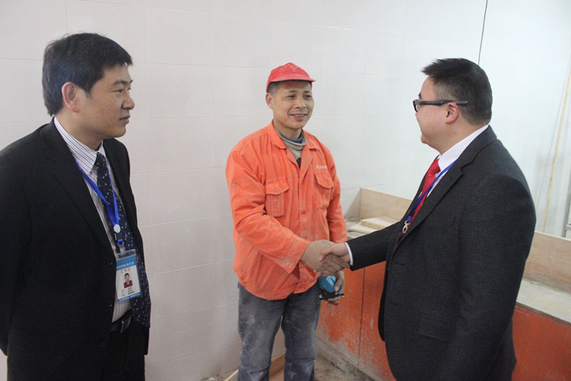 在美的集团员工食堂工地,李总一行认真察看了解了工地的施工进度、施工细节、工艺工序等情况,同时还详细了解了工人生活和工地安全监管情况。针对检查中发现的问题,李总要求现场负责人要切实负起责任,保证施工质量,决不允许留下安全隐患,同时做好工人工资发放的各项准备,让工人们开开心心过好年。