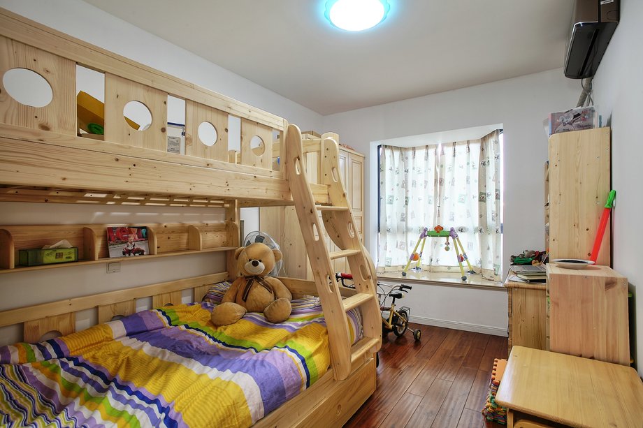 子女房与主卧最大的区别就在于设计上要保持相当程度的灵活性。子女房只要在区域上为他们做一个大体的界定,分出大致的休息区、阅读区及衣物储藏区就足够了。在室内色彩上吸引孩子是设计子女房的要点。儿童房间容易弄脏,装饰时应采用可以清洗及更换的材料,最适合装饰儿童房间的材料是防水漆和塑料板,而高级壁纸及薄木板等不宜使用。