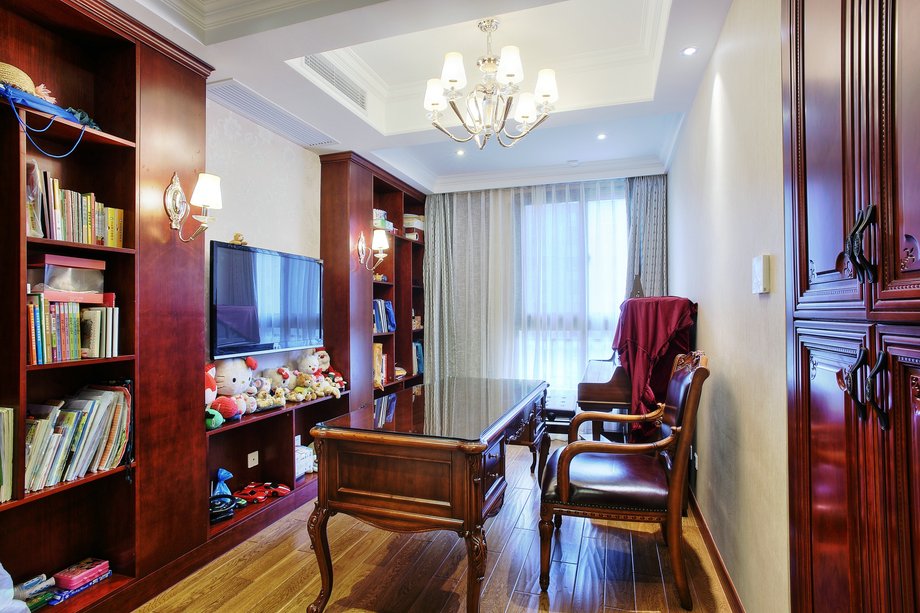 在层高不够的情况下,房间面积过大,或是在装修时做了吊顶,都会给人一种压迫感。最简单的做法,就是选择色彩强烈的竖条图案的窗帘?而且,尽量不做帘头。采用素色窗帘,显得简单明快,能够减少压抑感。此外,可以使用升降帘。